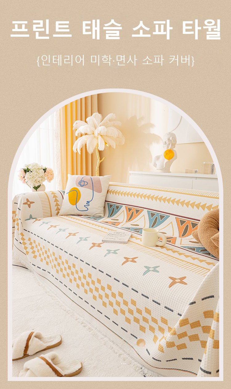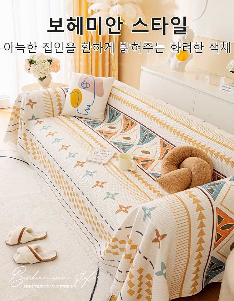 보헤미안 사계절 통용 면마 소파 커버